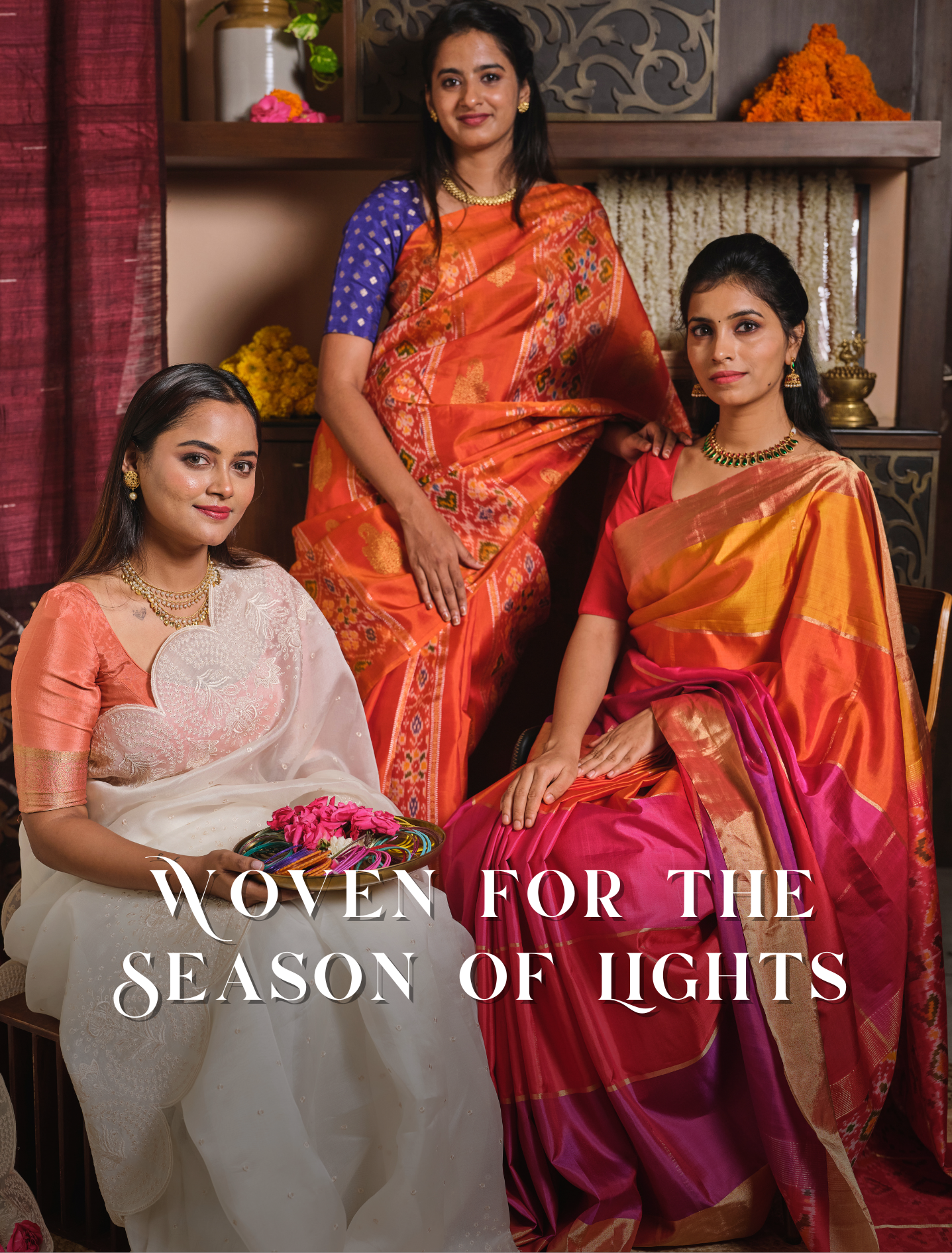 Imagine draping a saree that carries a legacy. At Dakshinam, every saree tells a story- woven by skilled hands, nurtured by tradition, and made with love. We collaborate with incredibly skilled master weavers across India bringing their labour of love straight to you. Our mission is simple: to keep the magic of Indian weaving traditions alive, one saree at a time. Remember how your grandmother once knew exactly where to go for that perfect saree- straight to the source? That’s the connection we’re bringing back. With reverence for tradition and a love for craft, we take pride in bringing you these elegant handloom sarees.