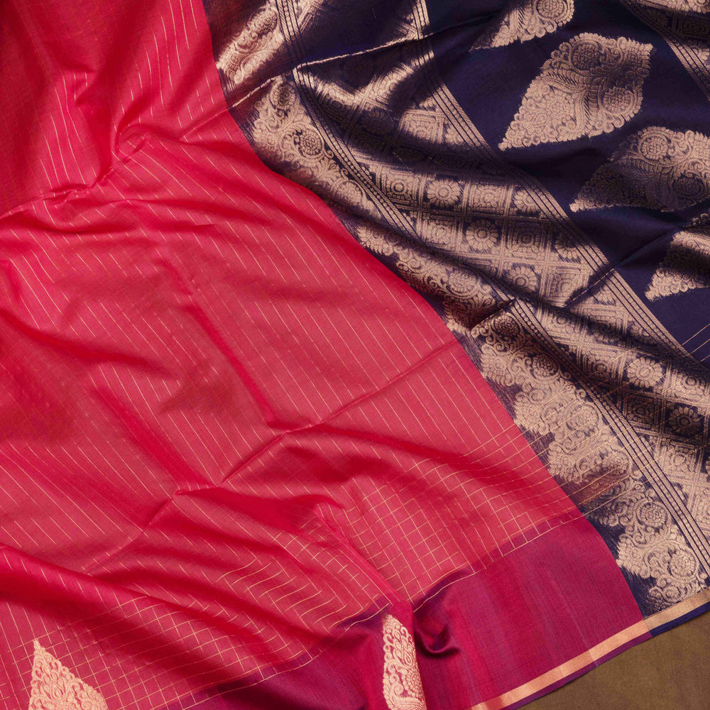 Handwoven Violet with Pink Kanjivaram Silk Saree - 1833T008664DSC