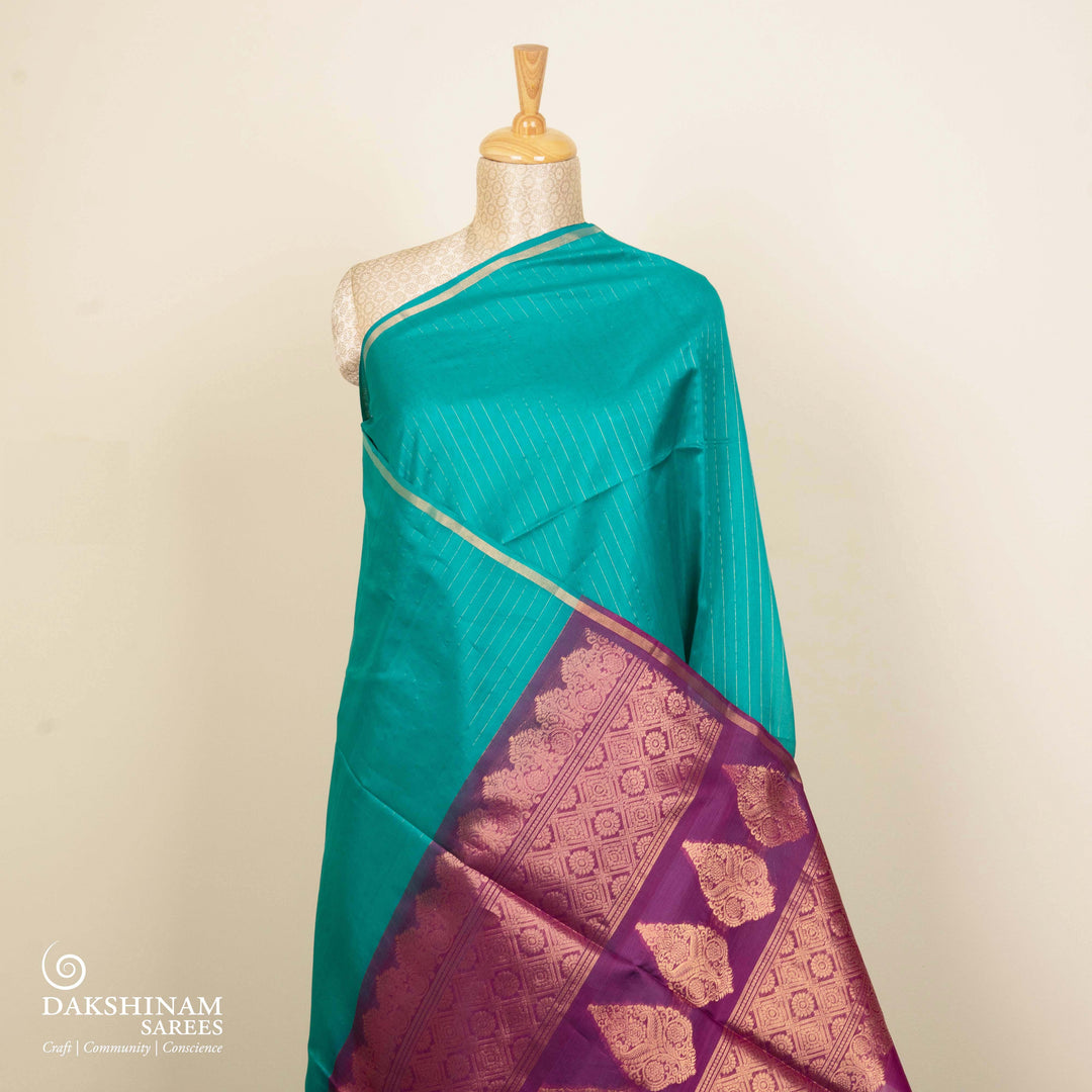 Handwoven Teal South Cotton Saree - 2939T014581DSC