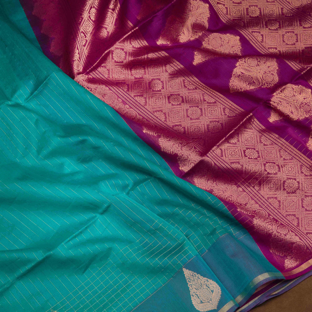 Handwoven Silk cotton saree in Teal and Magenta color- 3315T015900DSC