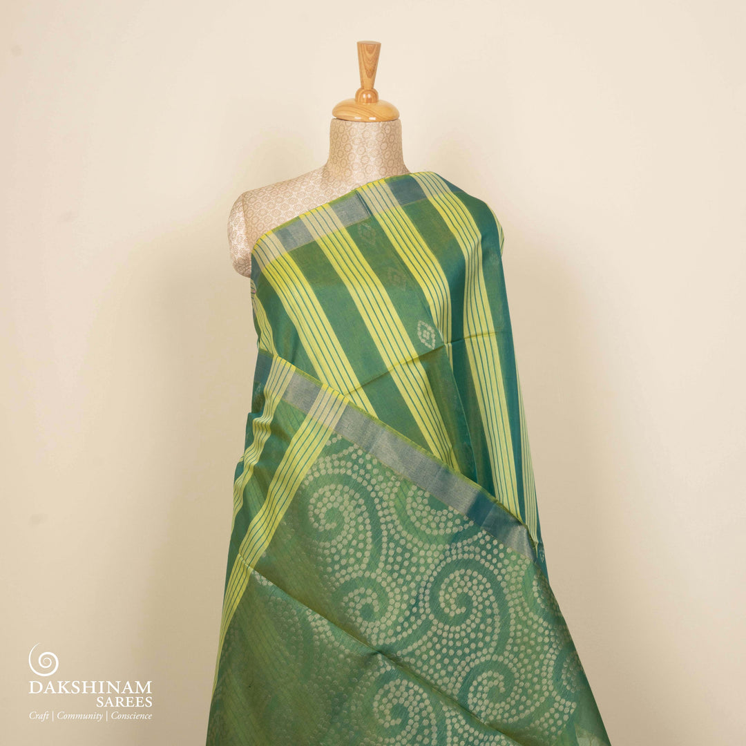 Light & Dark Green Silk Cotton Saree with Gold Zari Stripes and Diamond Butta- 3316T015901DSC