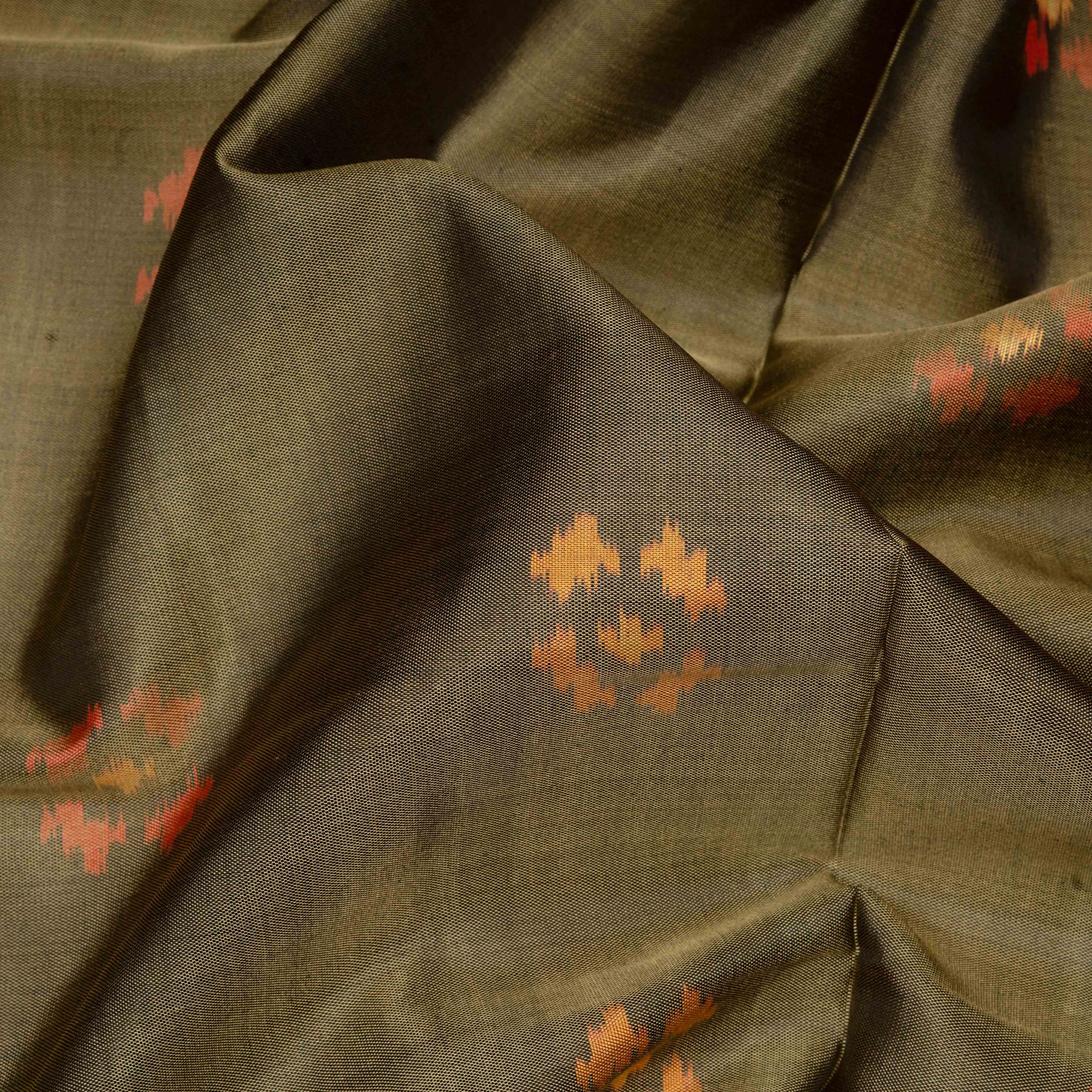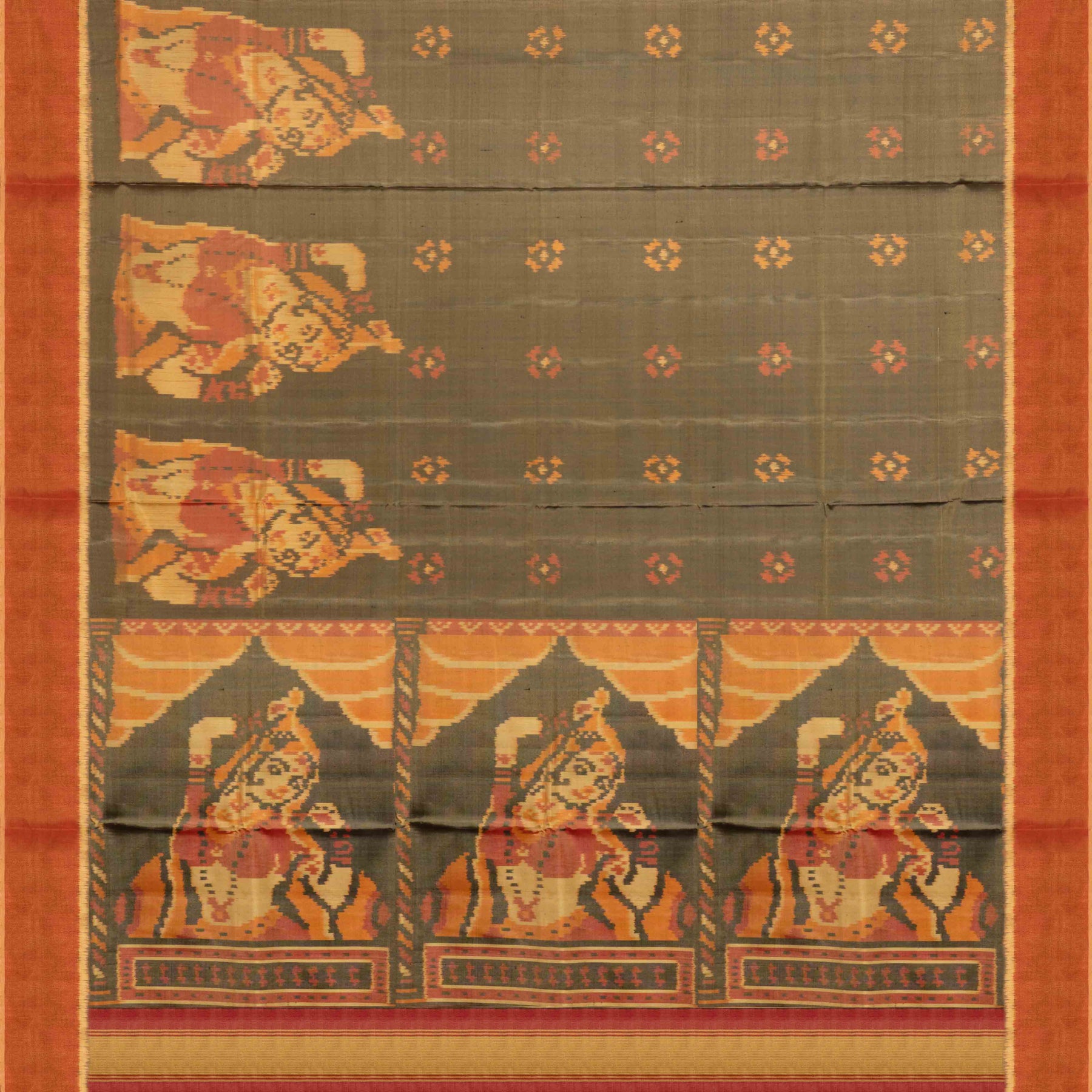 Handwoven moss grey and orange Ikkat silk Saree- 3091N040755DSC