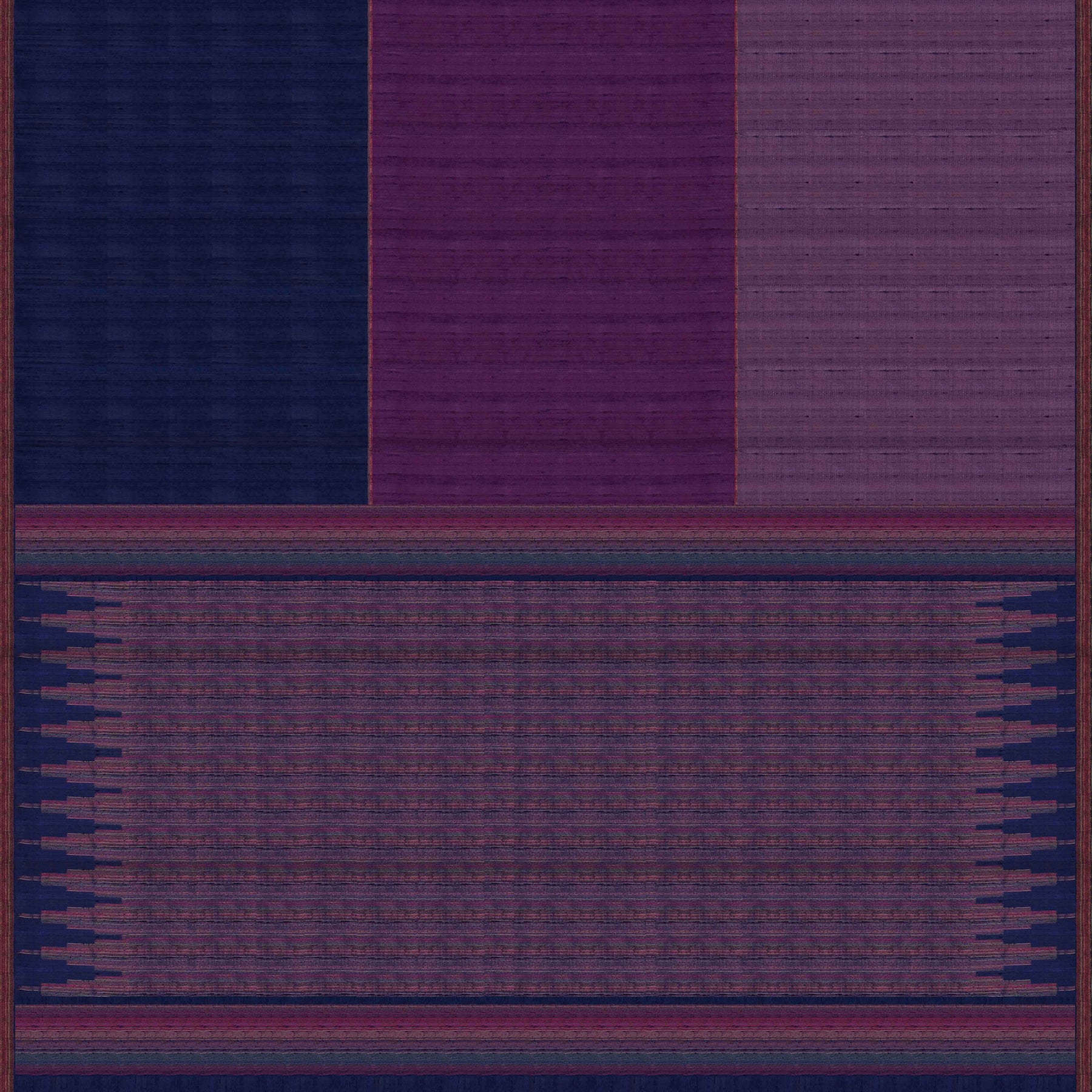 Experience contemporary elegance with this beautifully handwoven Dupion soft silk saree featuring a unique three-tone layered body. The subtle blend of lavender, magenta, and blue creates a soft ombré effect, making the saree visually striking yet graceful. The navy blue pallu adds a bold contrast and is adorned with a temple-inspired pattern woven using a stunning mix of gold, copper, and pink zari—bringing depth, artistry, and vibrance to the design.