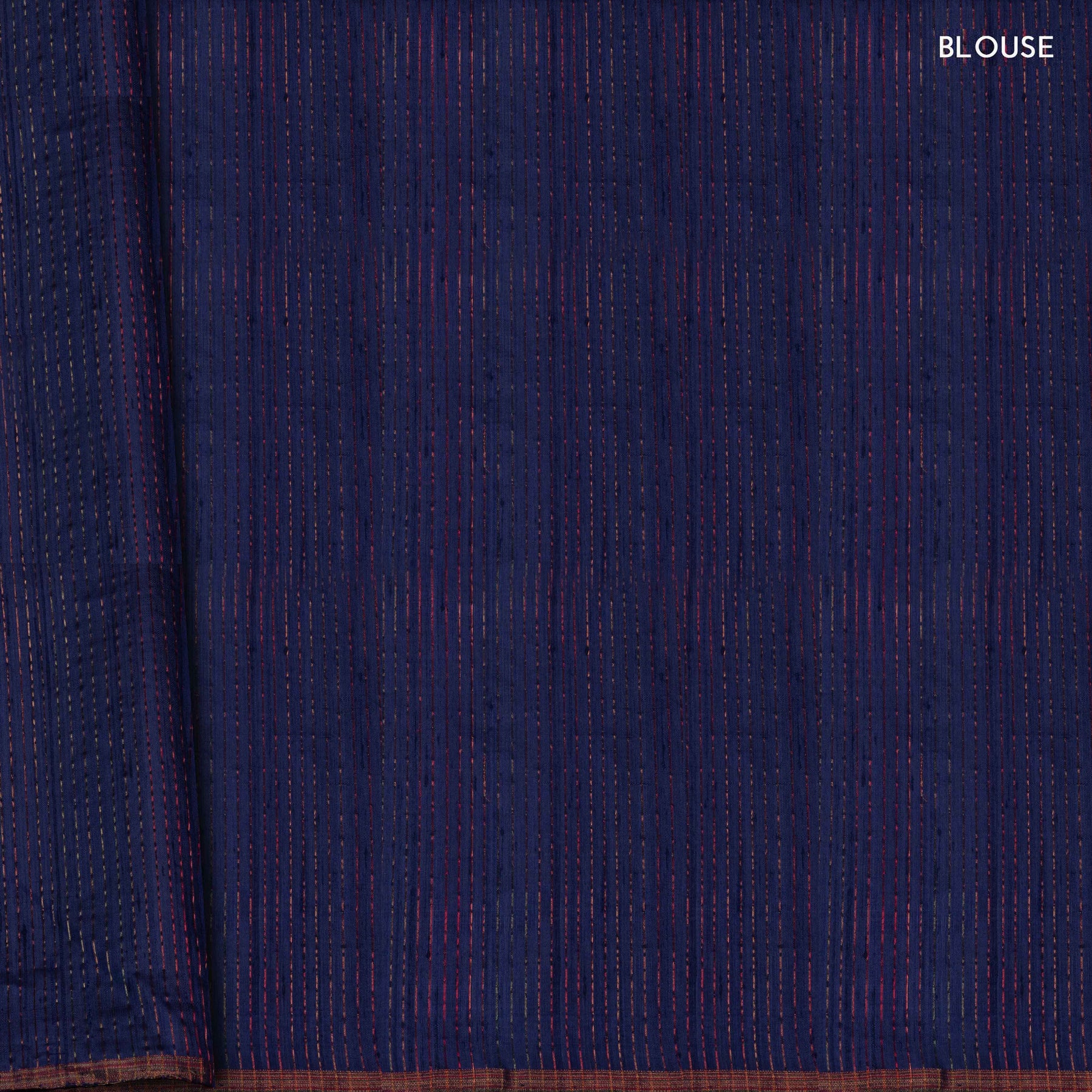Blouse: Navy blue with gold, copper, and pink zari stripes