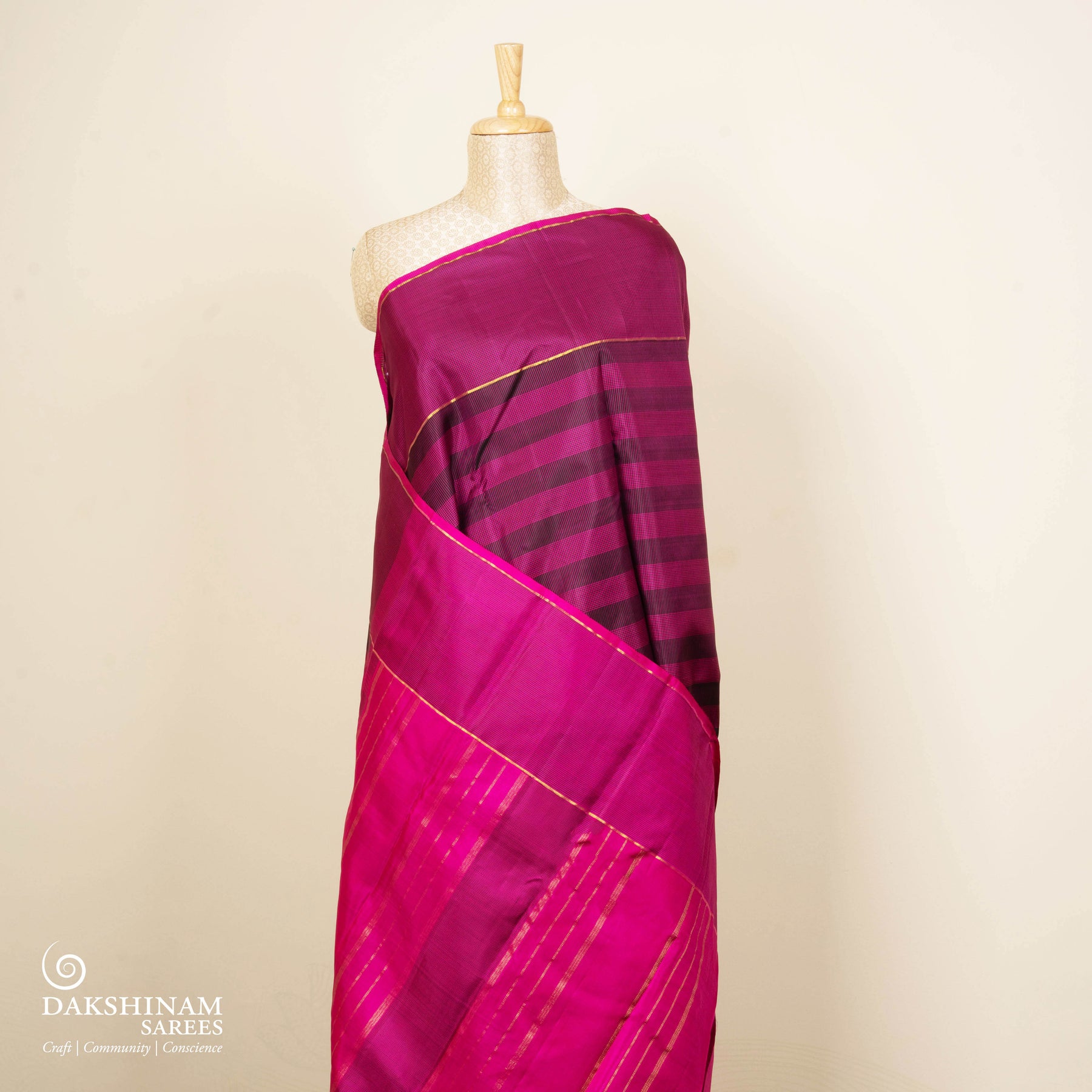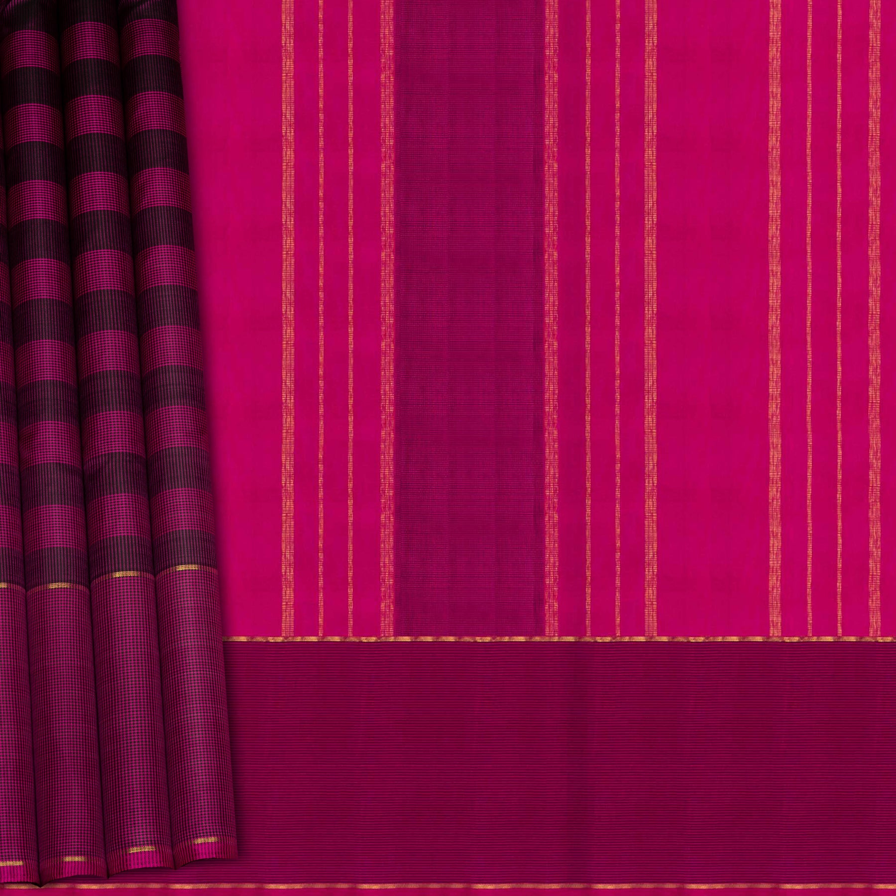 Magenta Kanjivaram Silk Saree with Checks & Striped Pallu 3422T015994DSC