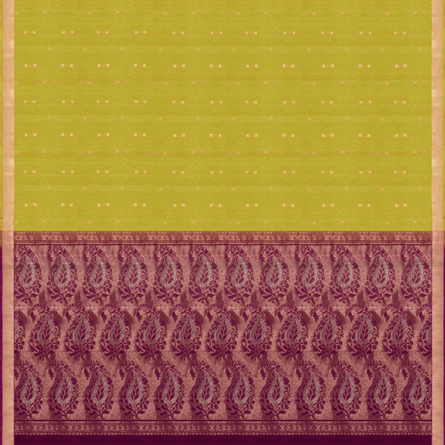 Lime Green Silk Cotton Saree with Purple Border and Gold Zari 3317T015898DSC