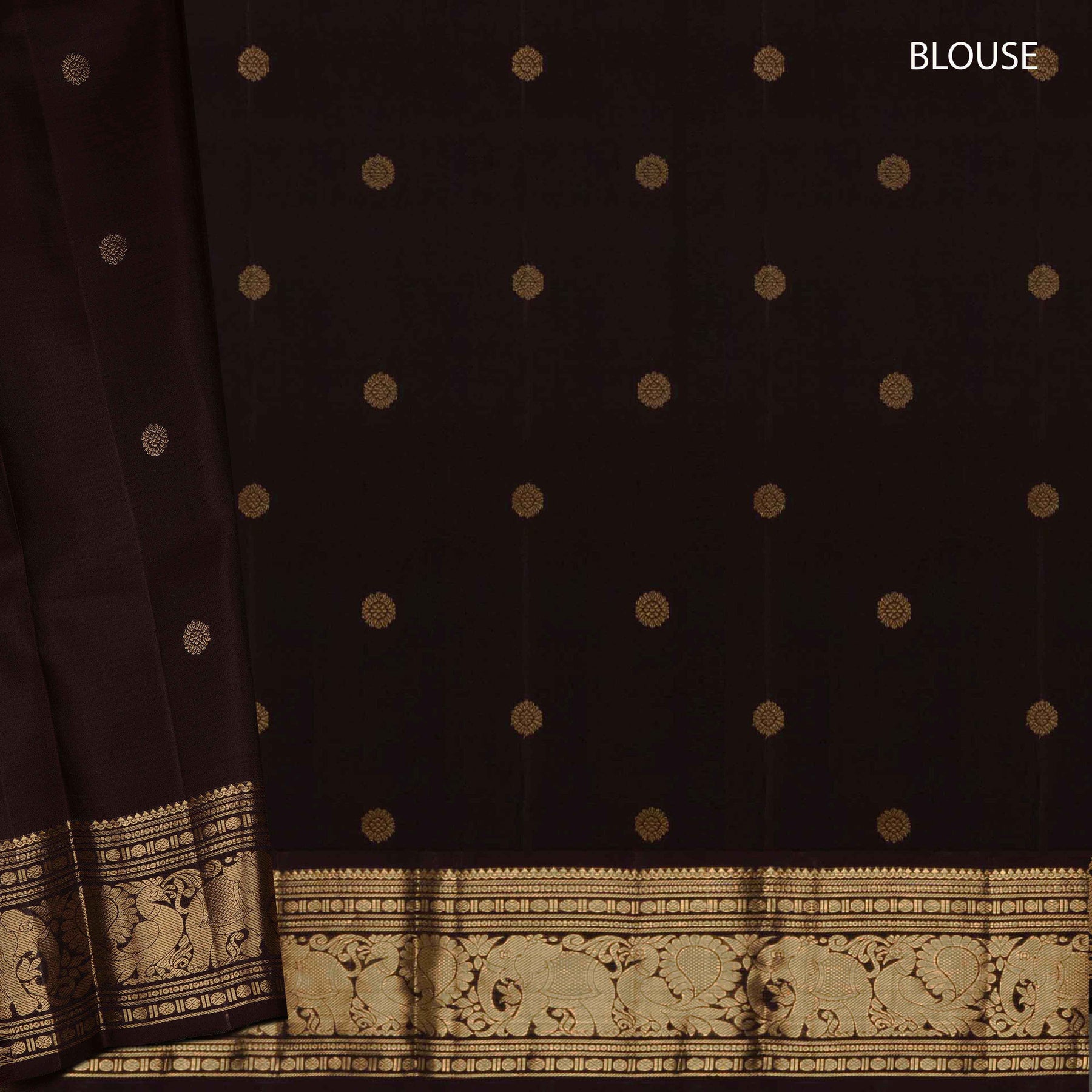 Handwoven Moss brown and deep brown Kanjivaram silk Saree- 3205T015475DSC