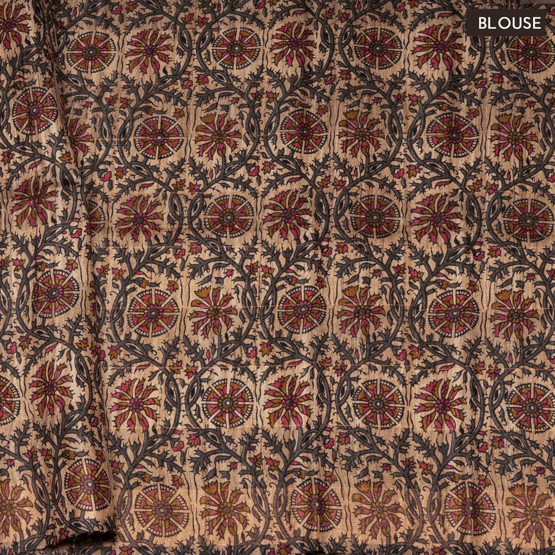 Blouse: Beige base with floral vine pattern