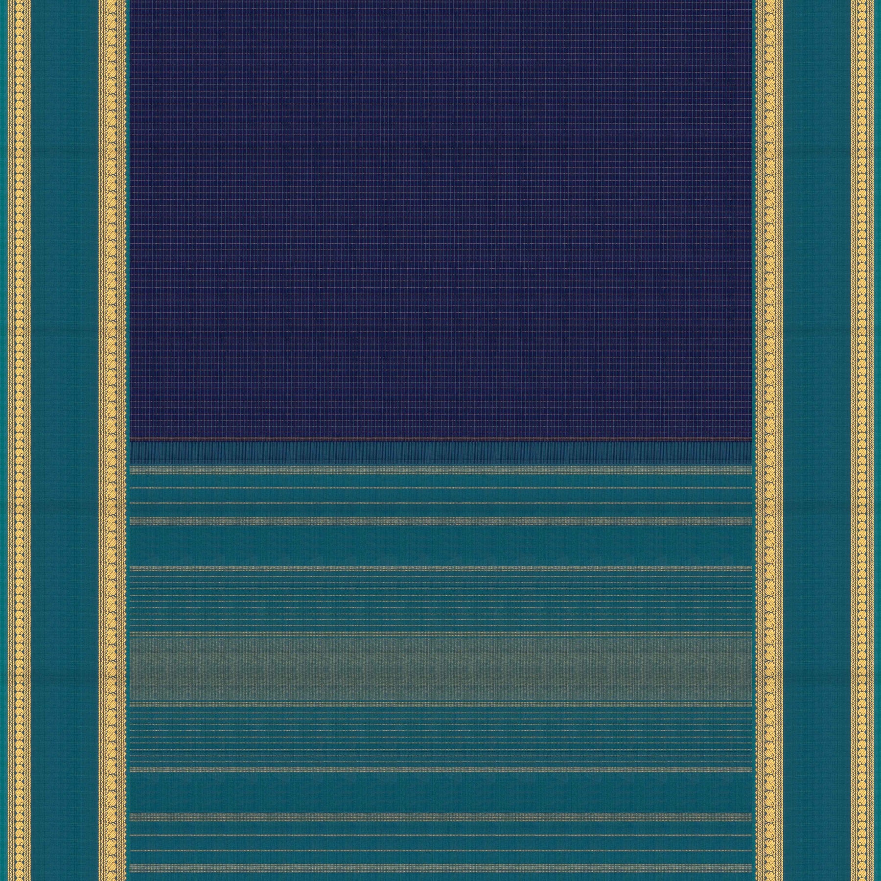 Handwoven Navy blue with teal Kanjivaram silk Saree- 3202T015434DSC