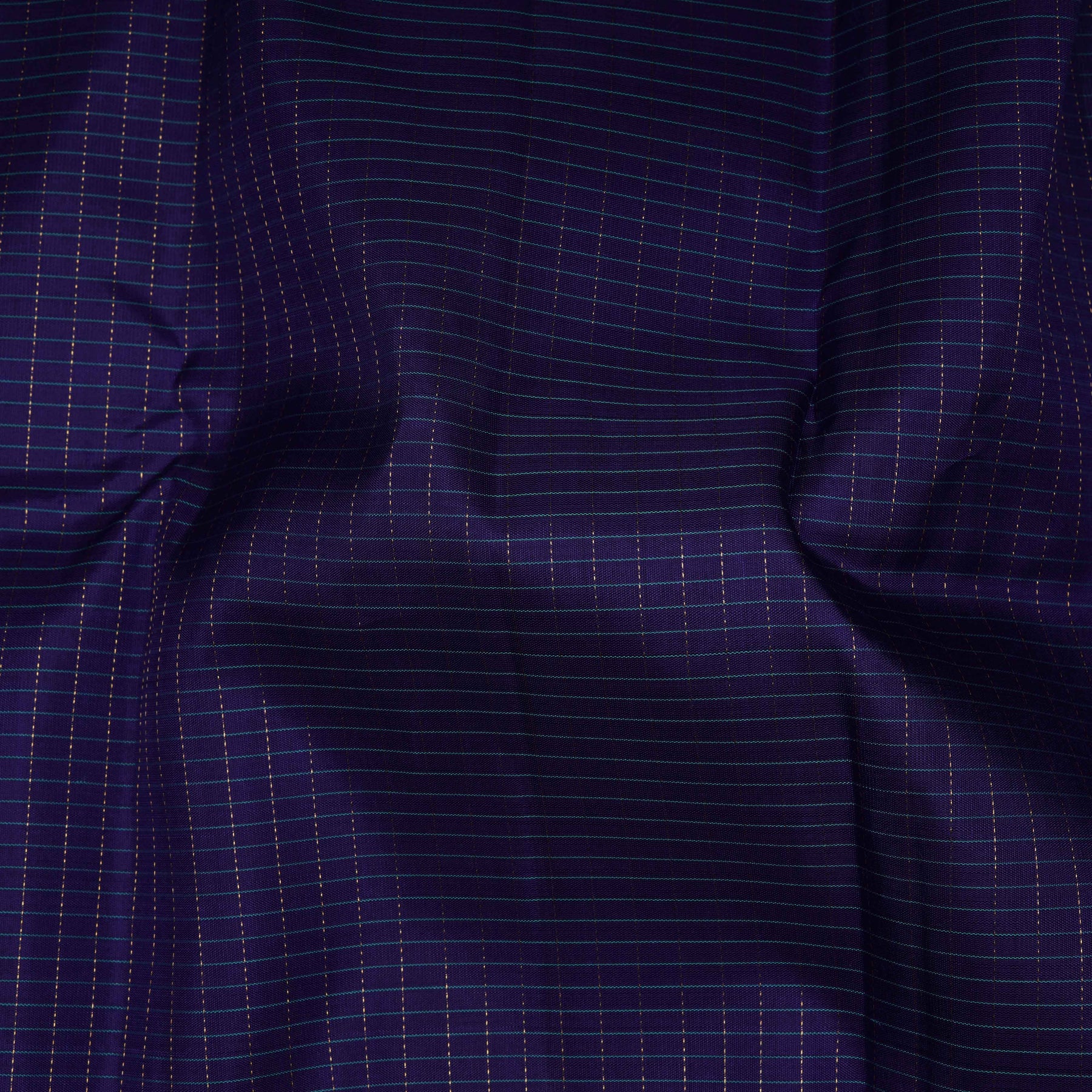 Experience the elegance of heritage weaving with this stunning Kanjivaram silk saree in a classic navy blue and teal combination. The body features refined vaira oosi checks that lend a structured and graceful texture. The contrasting teal border enhances the saree with a traditional rettapettai weave adorned with peacock and paisley motifs in shimmering gold zari, adding a touch of regal charm. The pallu continues the teal tone with a simple rekh pattern, keeping the aesthetic refined and timeless.