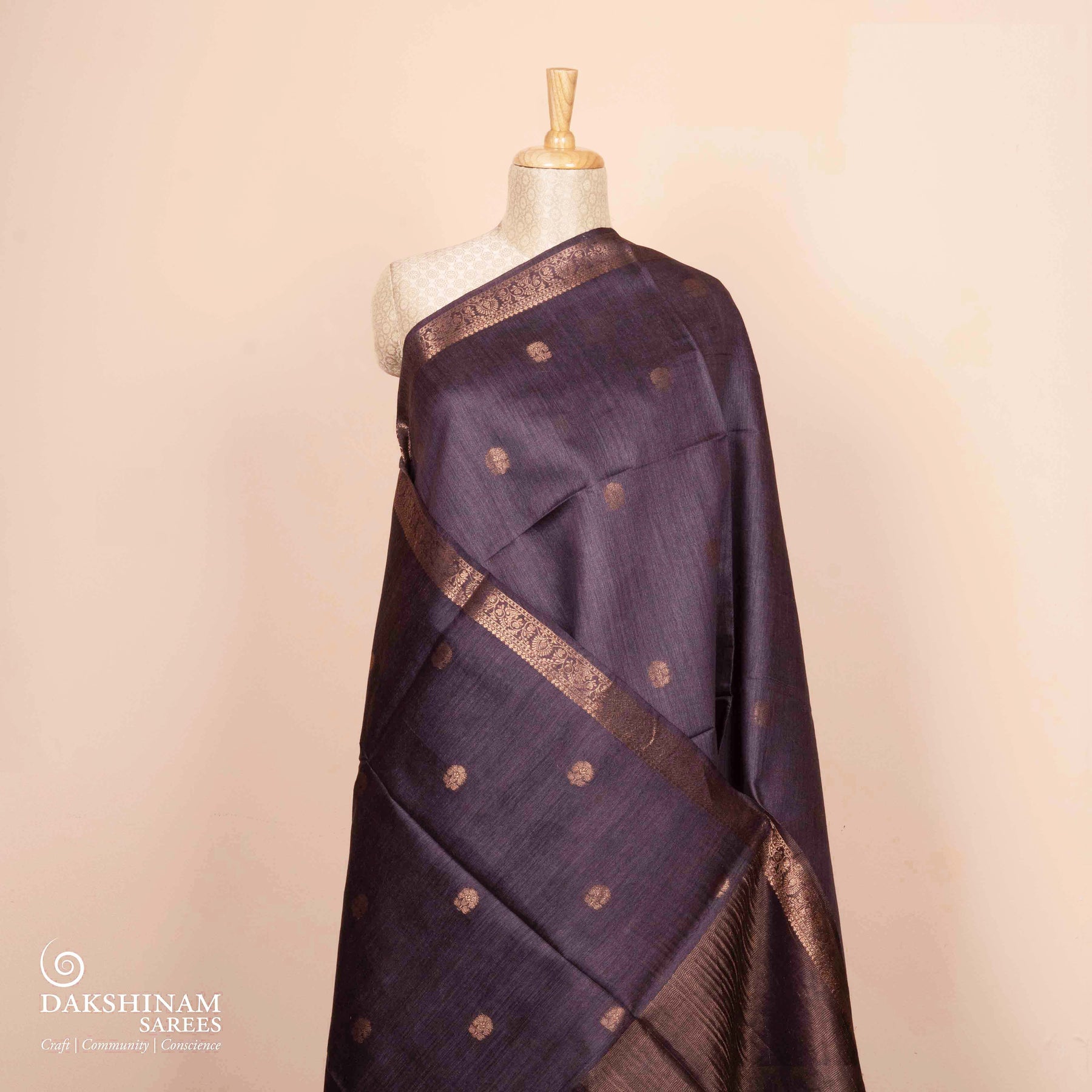 Always dry clean woven silks, especially if they feature zari or intricate weaves. Store them wrapped in muslin or cotton cloth in a cool, dark space, avoiding plastic covers. Refold every few months to prevent permanent creases, and iron gently on low heat with a protective cotton cloth placed on top.