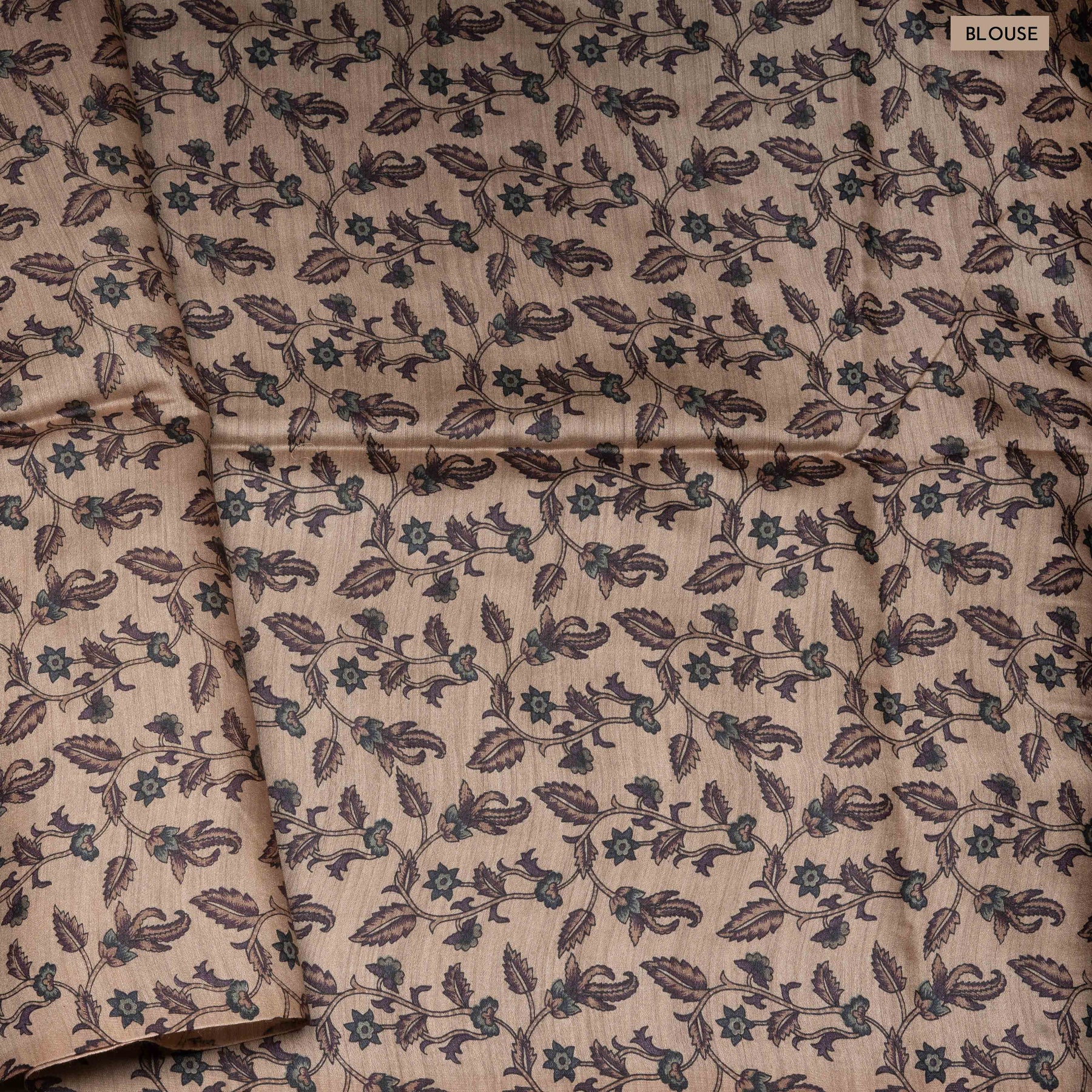 Blouse: Beige base with leaf vines pattern