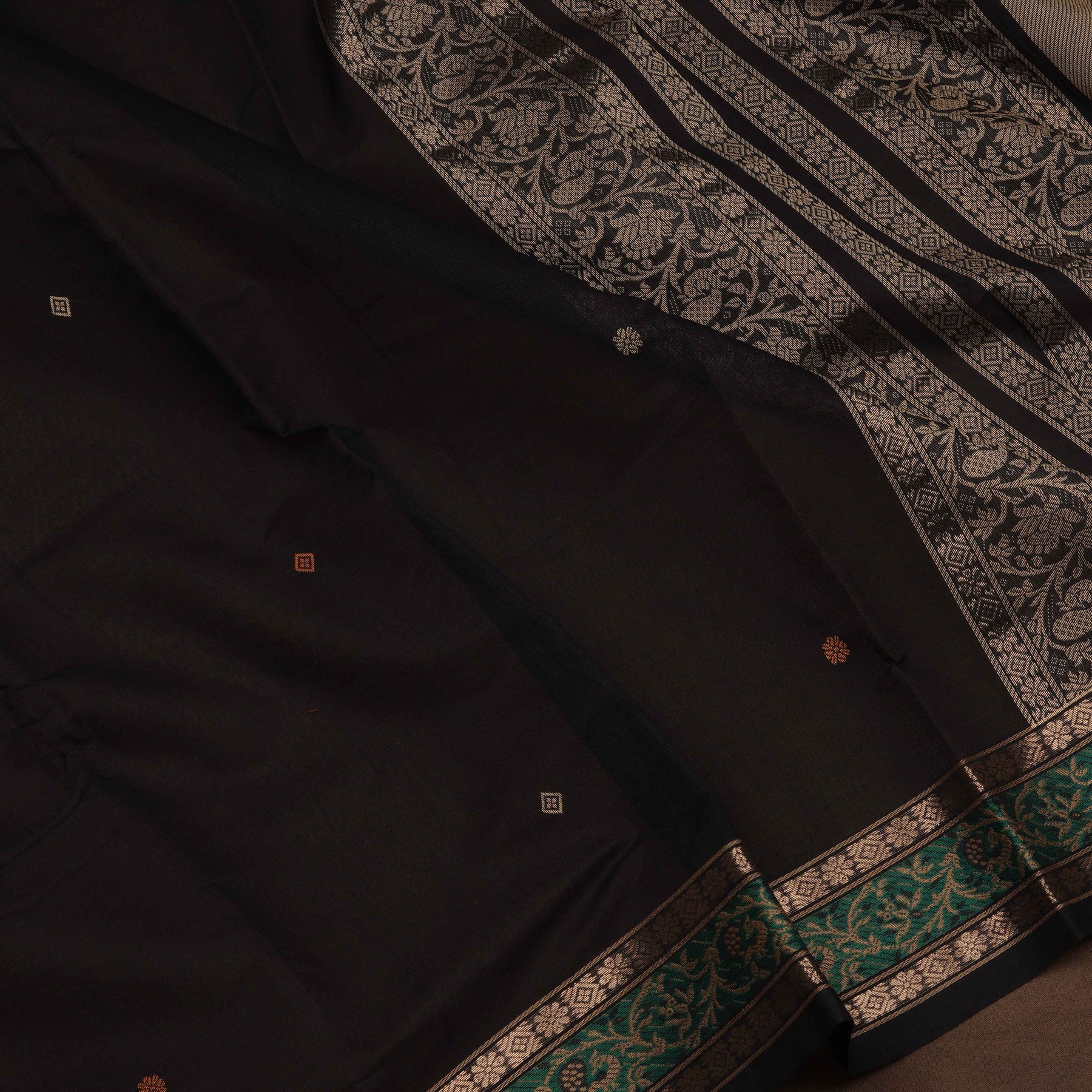 Black Kanchi Cotton Saree with Traditional Butta and Floral Border 3344T015919DSC