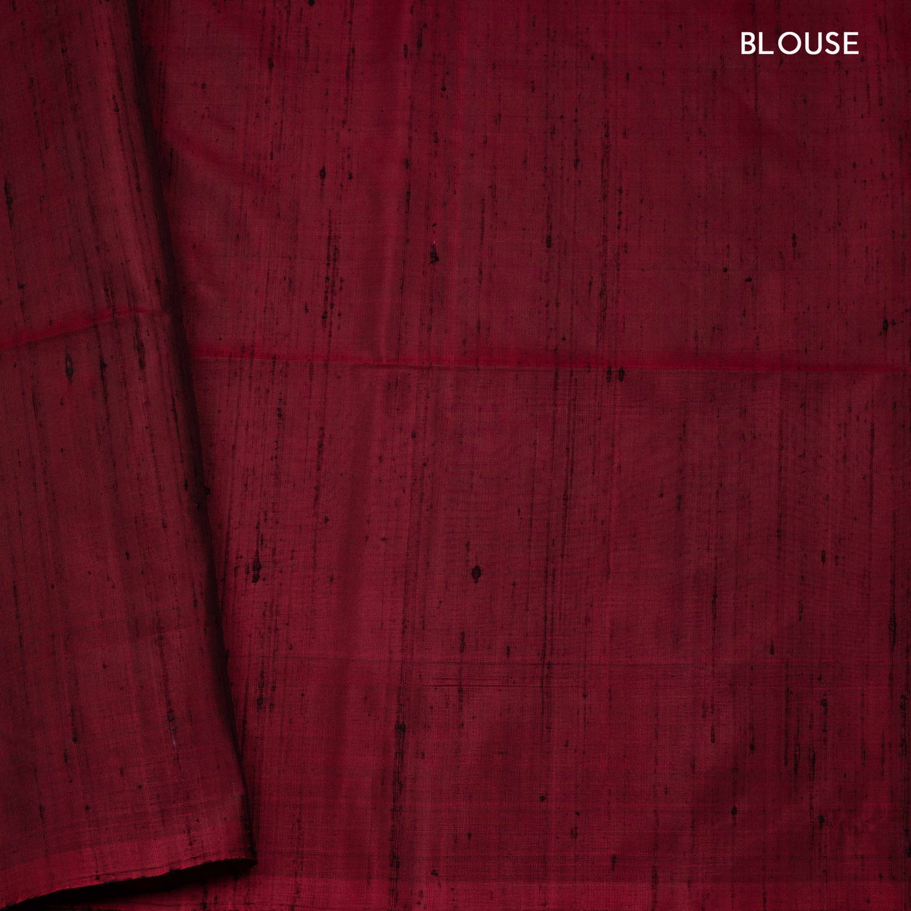 This elegant soft silk saree features a rich green body adorned with beautiful paisley leaf-shaped buttas woven in gold and silver zari along with delicate diamond motifs across the body. The striking maroon border is inspired by traditional Paithani weaving and showcases intricate geometric floral vine patterns. The maroon pallu continues the Paithani-style elegance with paisley motifs, diamond patterns, and detailed floral vines that enhance the saree’s classic appeal. Paired with a plain maroon dupion silk blouse, this saree blends traditional craftsmanship with graceful styling, making it a perfect choice for festive occasions and celebrations.
