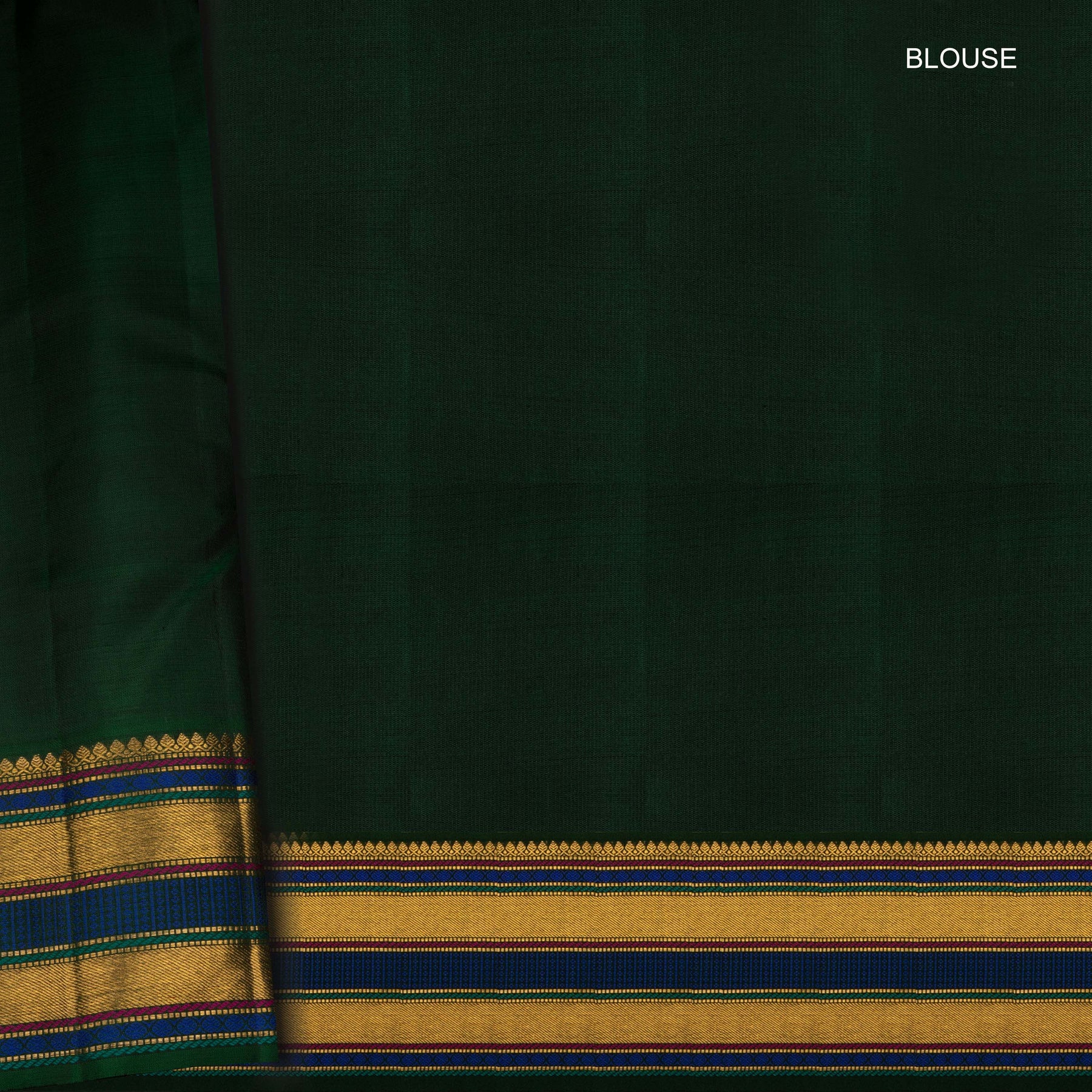 It comes with a plain bottle green blouse adorned with the same border, completing the ensemble with understated elegance — perfect for festive, cultural, or wedding occasions.