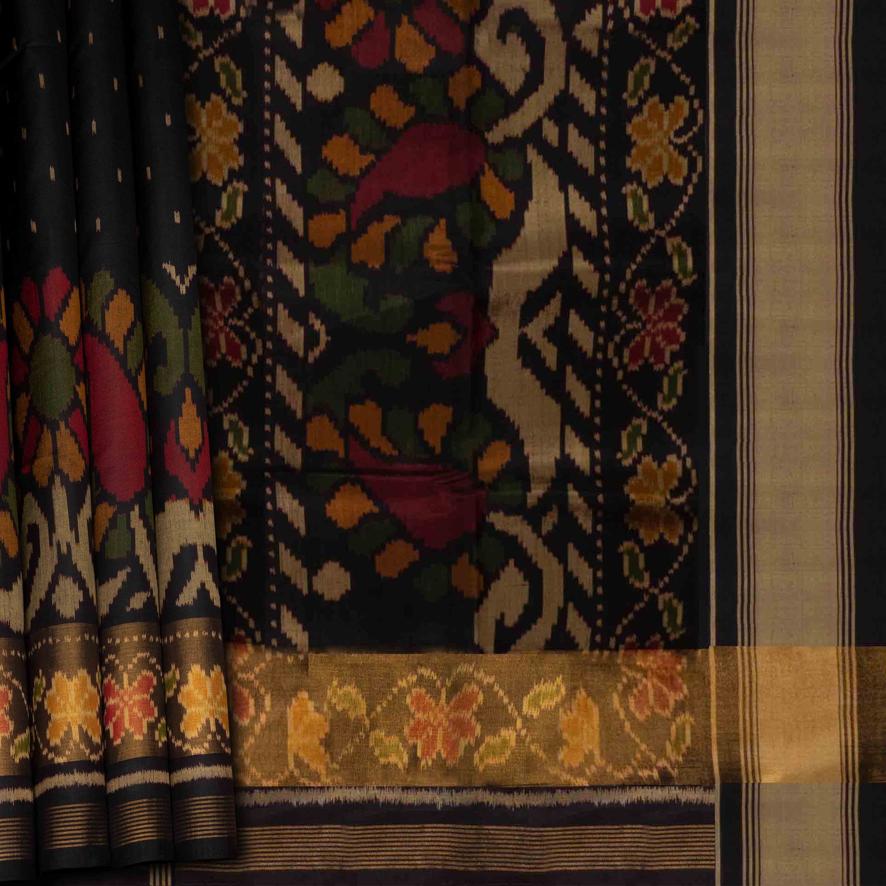 Handwoven black Ikat silk Saree - 3086N040729DSC