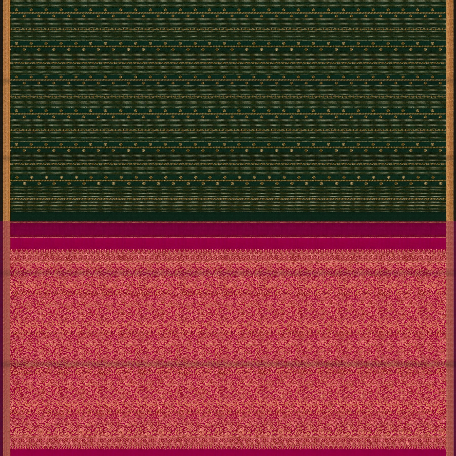 Handwoven Bottle Green with Pink Borderless Kanjivaram silk Saree- 3297T015798DSC
