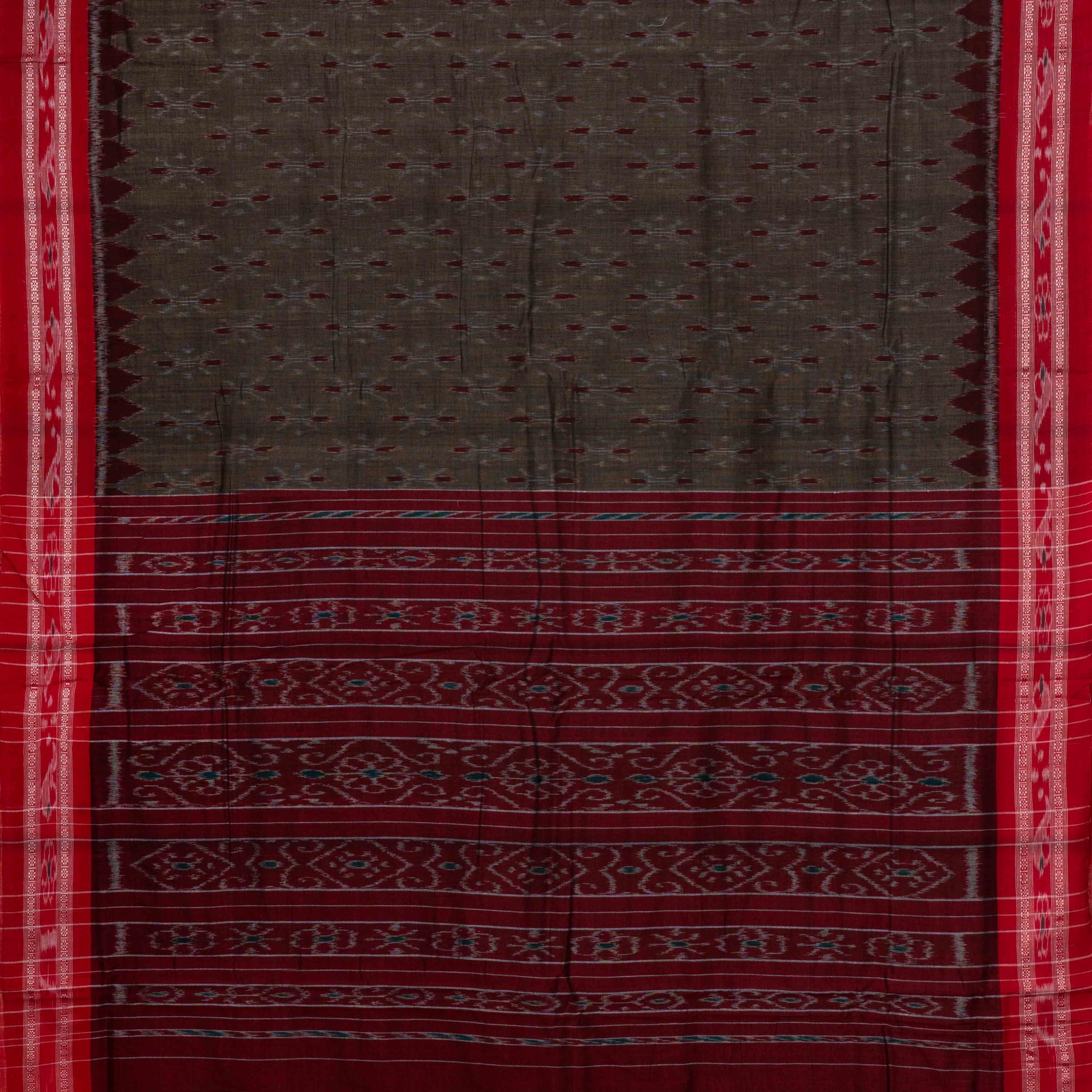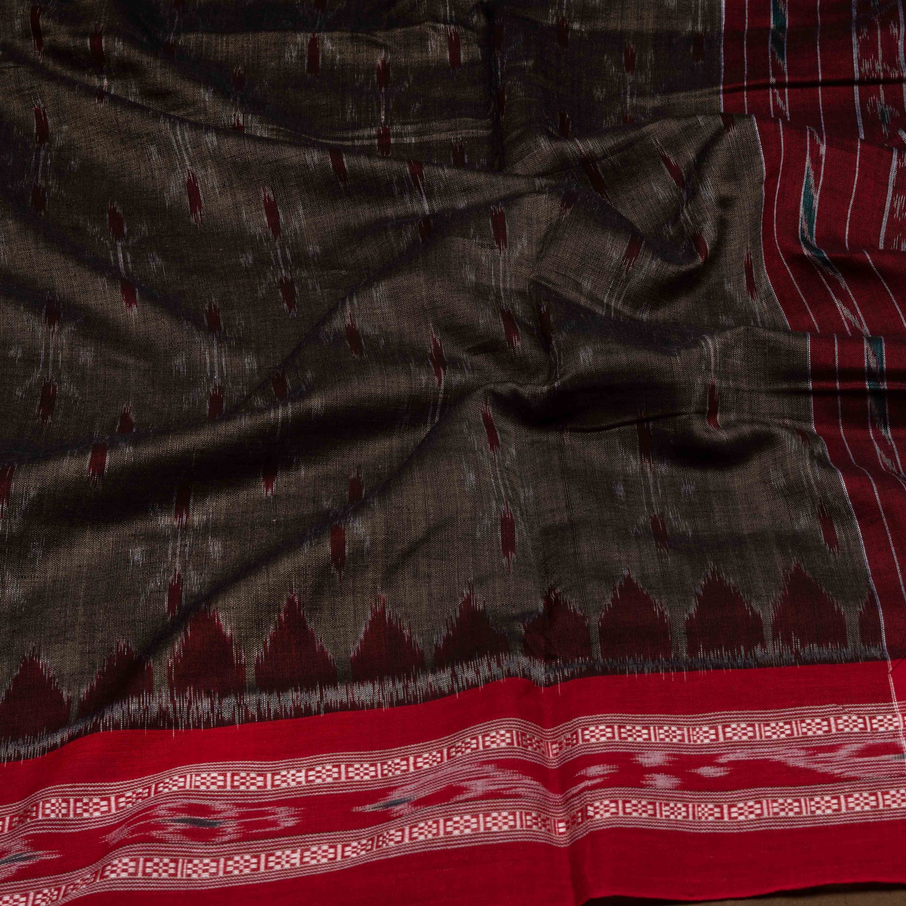 Handwoven Brown with red Ikat Cotton Saree- 3079T015171DSC