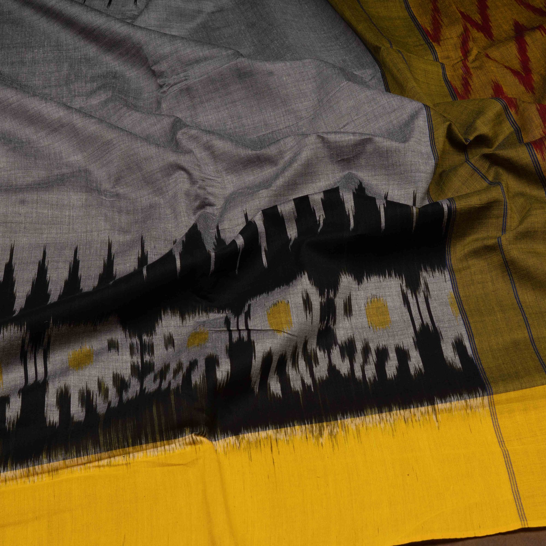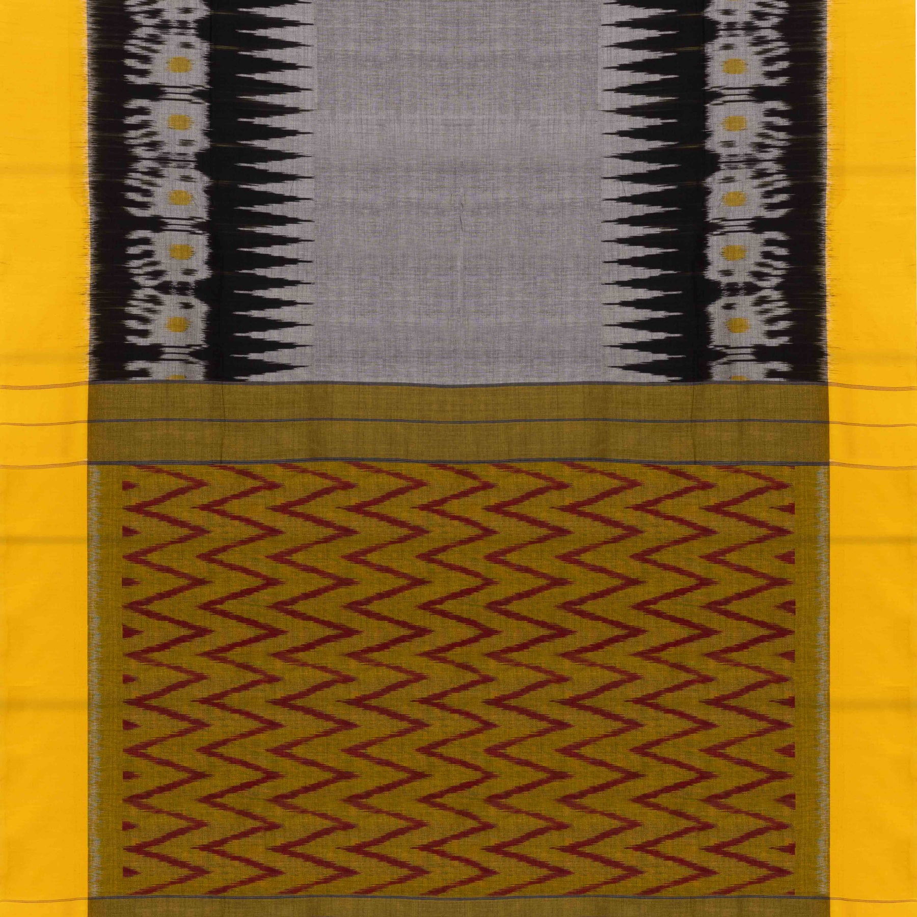 Handwoven Grey with Yellow Ikat Cotton Saree- 3077T015154DSC