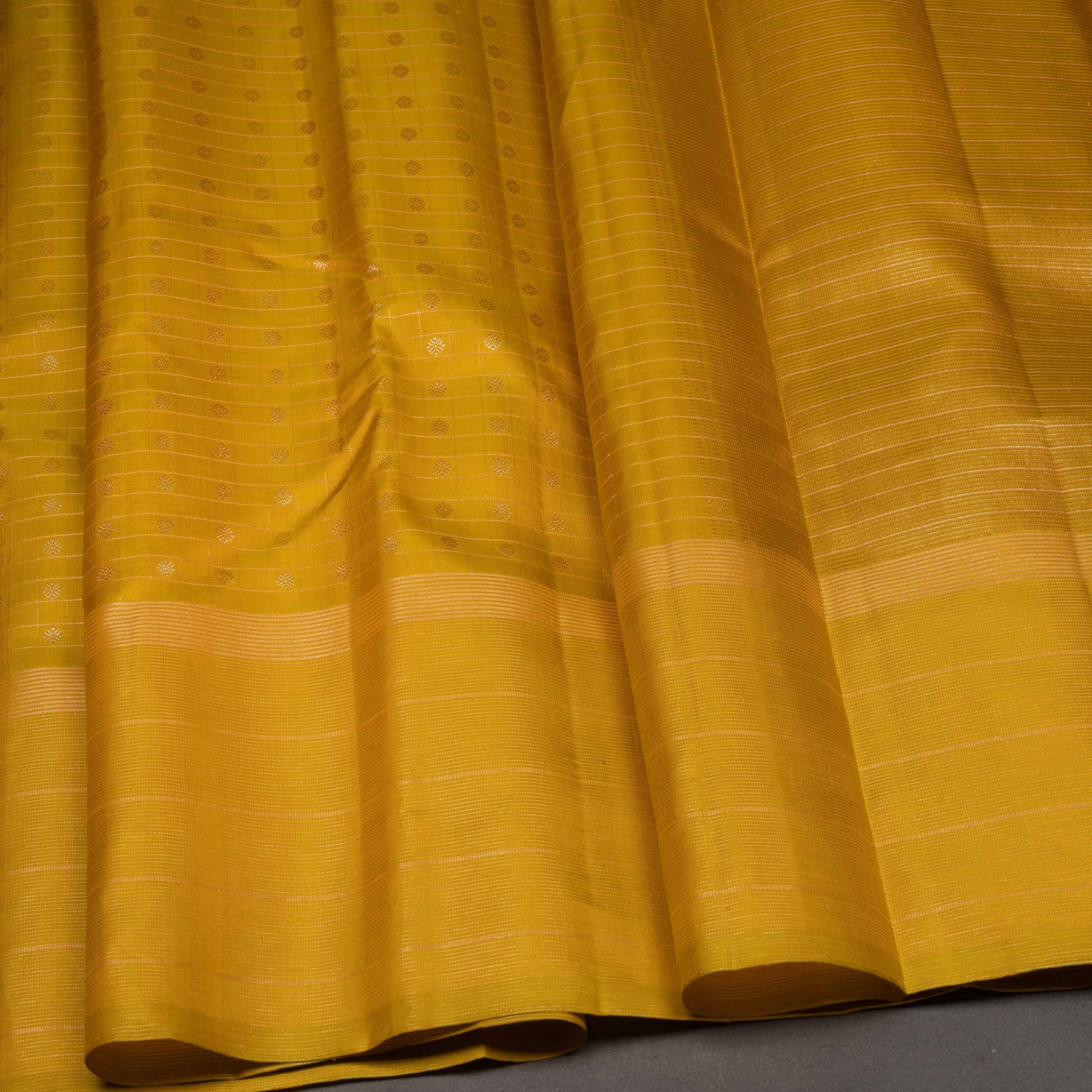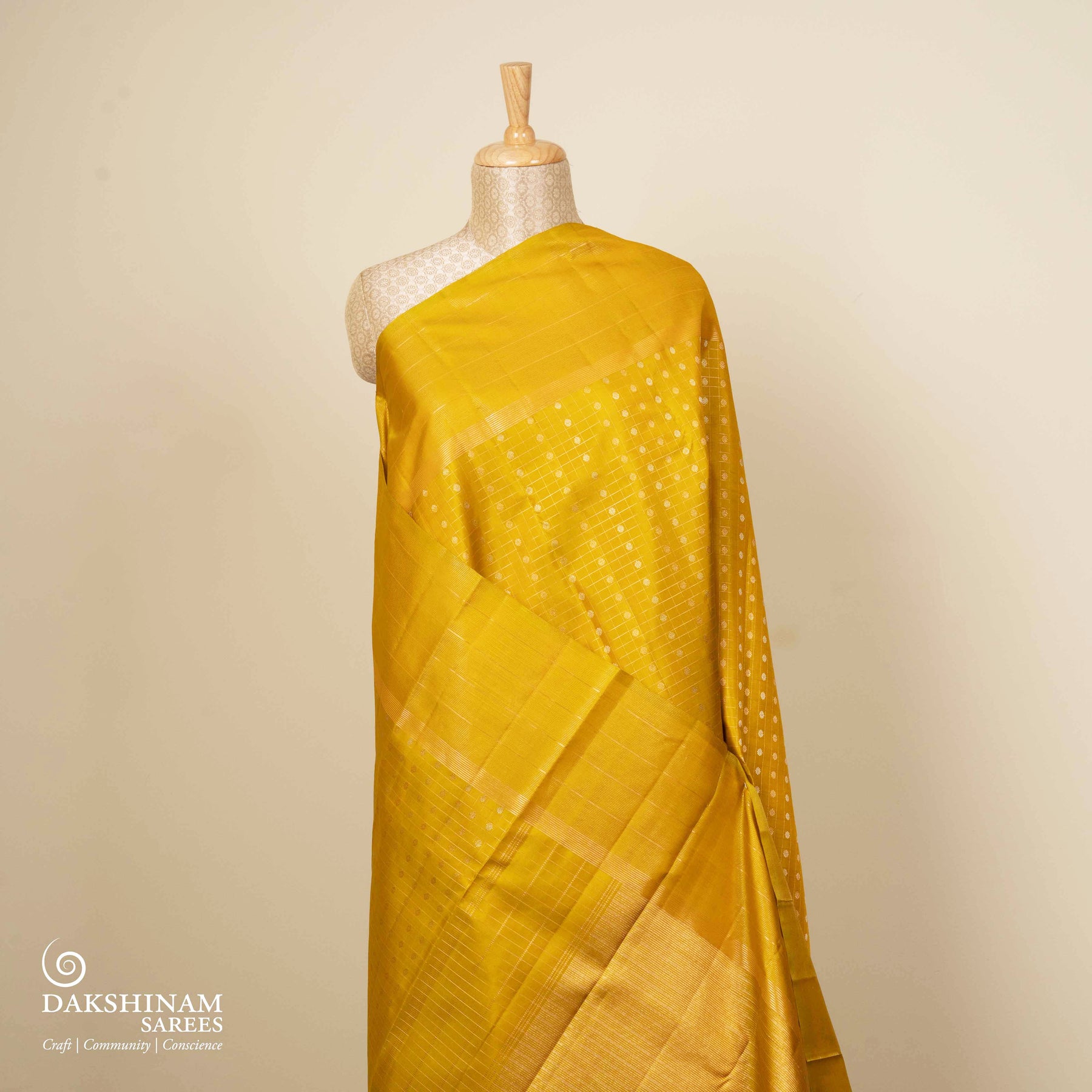 Always dry clean woven silks, especially if they feature zari or intricate weaves. Store them wrapped in muslin or cotton cloth in a cool, dark space, avoiding plastic covers. Refold every few months to prevent permanent creases, and iron gently on low heat with a protective cotton cloth placed on top.