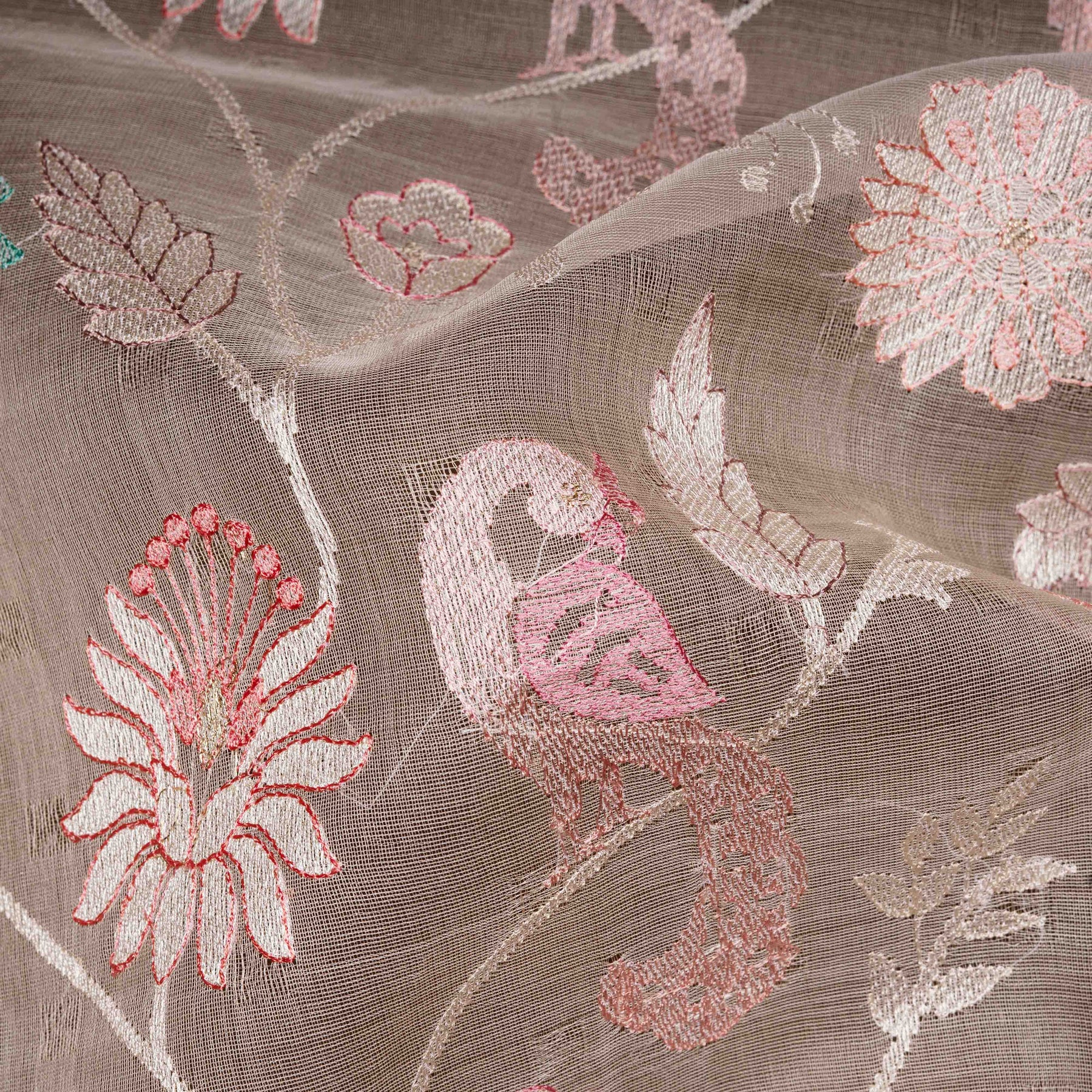 Opt for professional dry cleaning to ensure the embroidery and embellishments remain intact. When storing, pad the embroidered areas with soft cloth to prevent crushing or distortion, and avoid folding along the embroidery lines. Before and after wearing, check for loose threads or dust that may snag the saree.