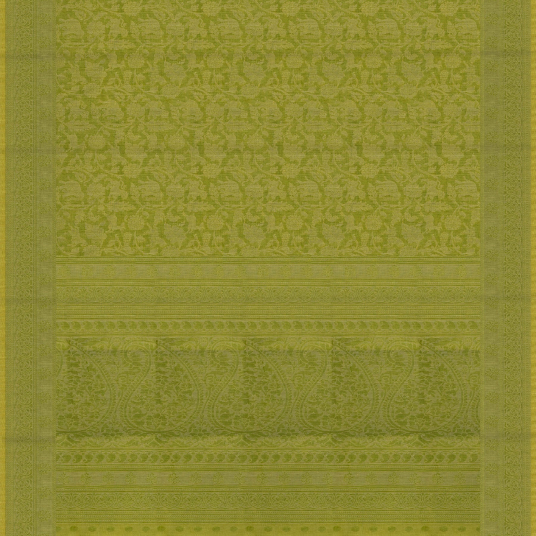 Lime Green South Cotton Saree with Heritage Motif Border 3371T015668DSC
