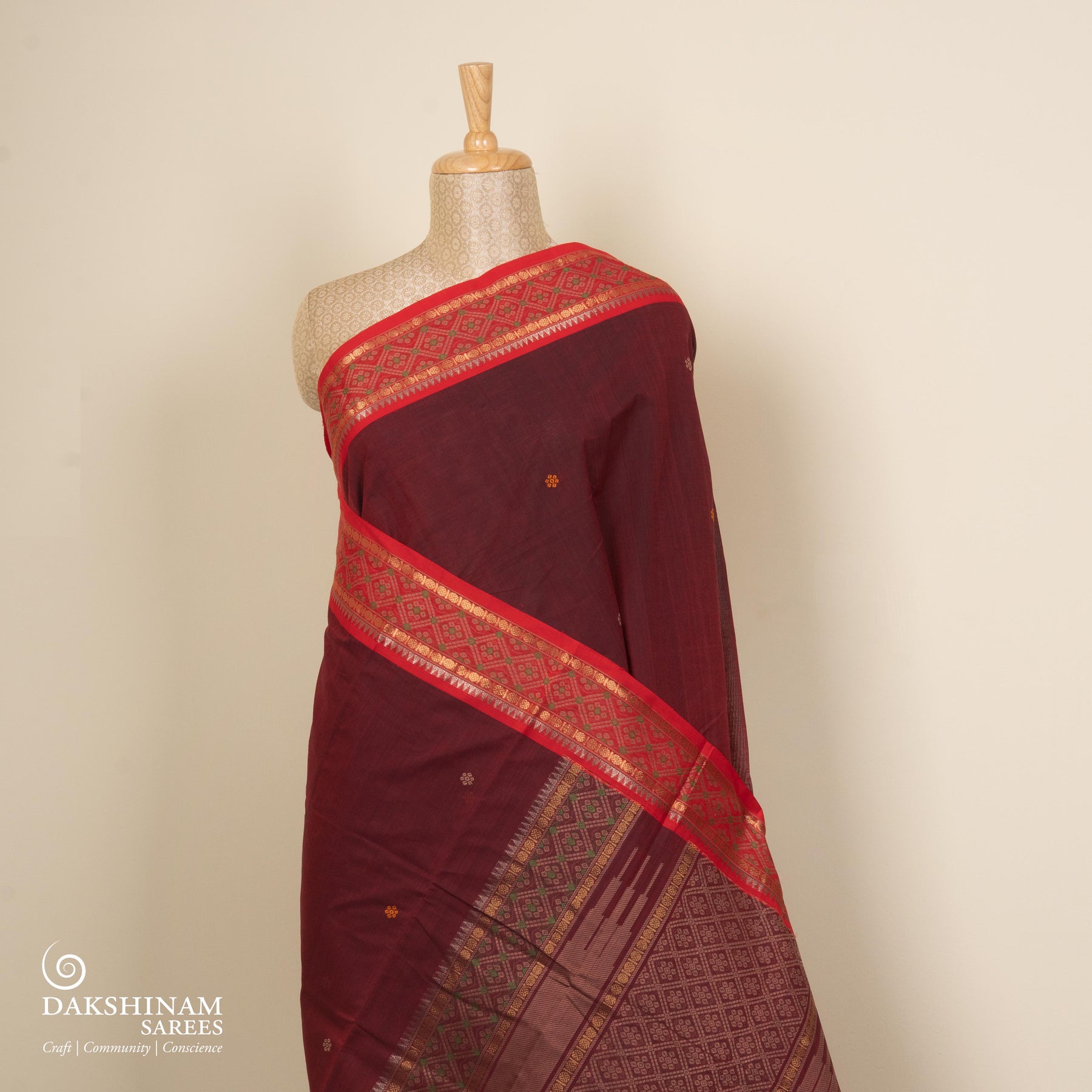 Maroon Kanchi Cotton Saree with Traditional Butta Border 3343T015928DSC